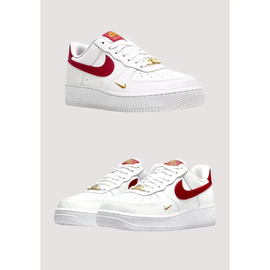 The Nike Air Force 1 Low White Red blends classic design with bold color contrast. Featuring premium white leather with red accents and gold mini Swoosh detailing, it’s the perfect mix of heritage and fresh street energy.