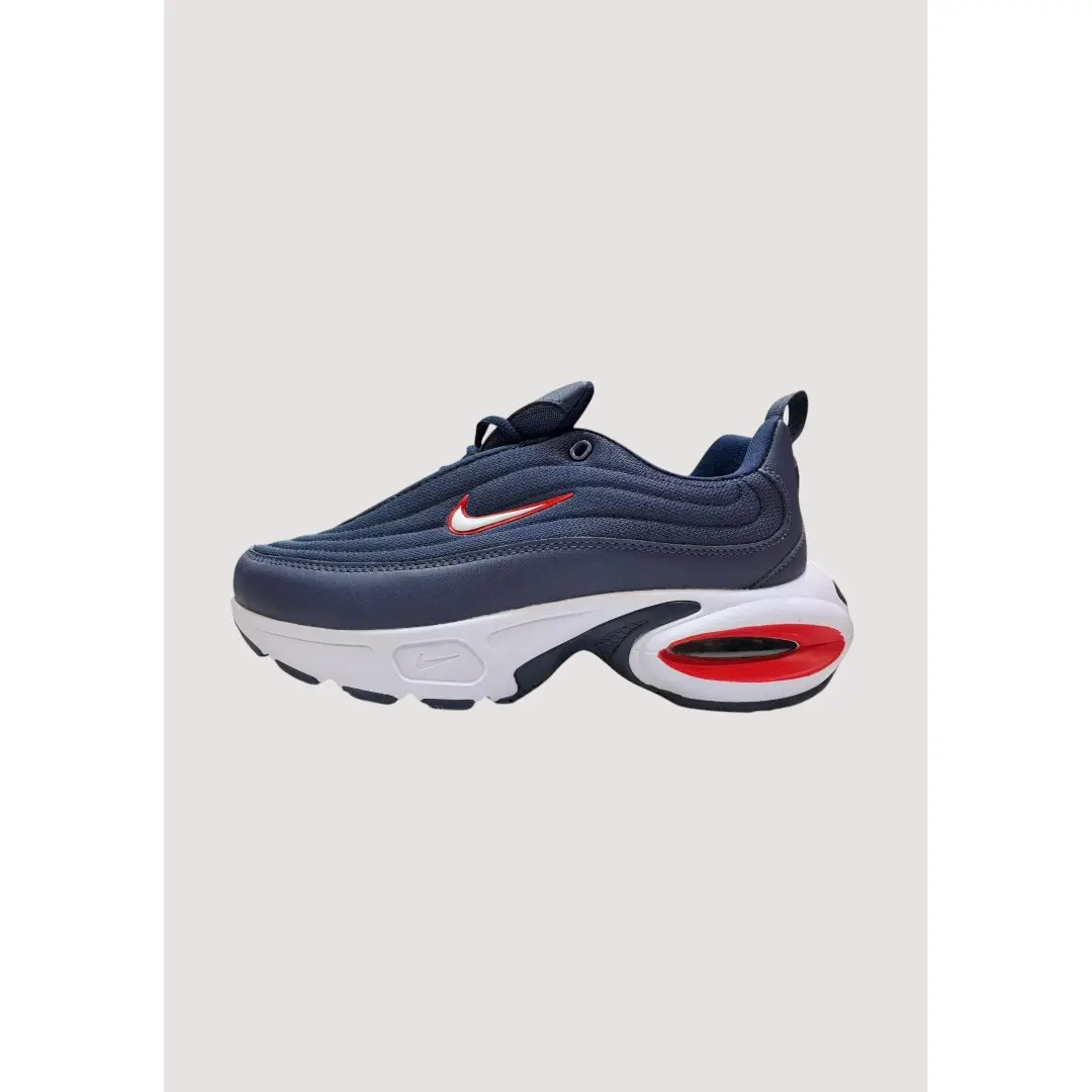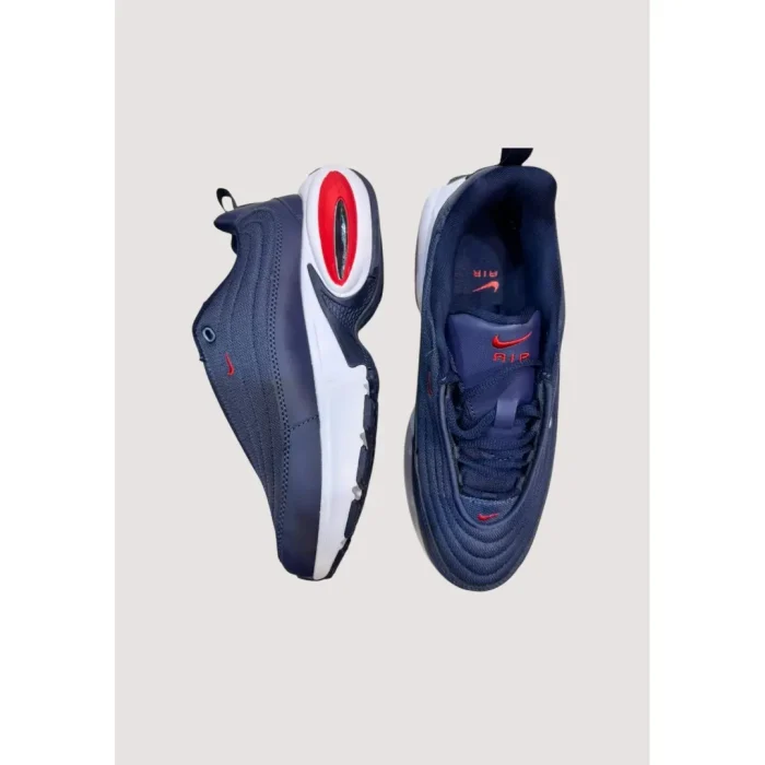 The Nike Air Max Portal Navy White Red delivers a bold contrast of navy and white, highlighted with neon red accents and cushioned with visible Air Max technology.