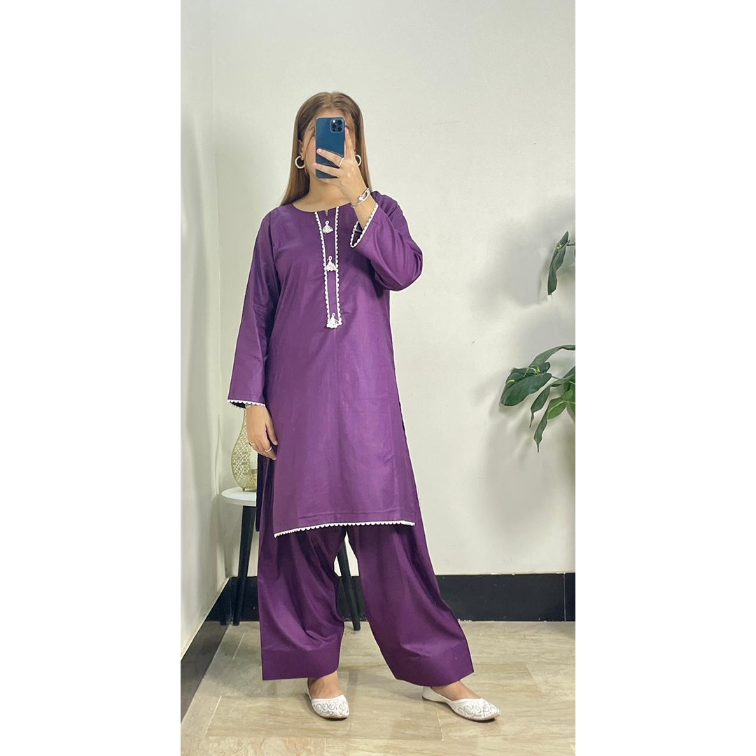 A graceful 2 Piece Suit featuring a classic straight-cut shirt paired with matching shalwar. Designed for elegance, comfort, and versatility β perfect for daily wear and special gatherings.