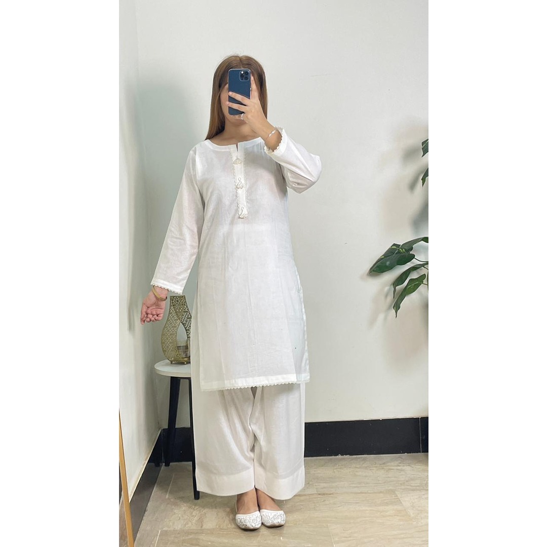 A graceful 2 Piece Suit featuring a classic straight-cut shirt paired with matching shalwar. Designed for elegance, comfort, and versatility β perfect for daily wear and special gatherings.