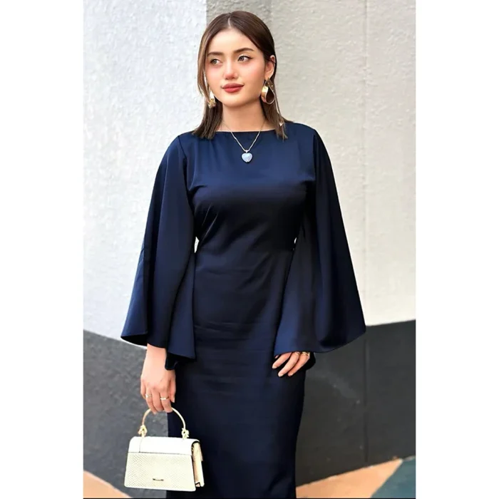 This elegant full-length maxi is designed with a modern and sophisticated look. The highlight feature is the adjustable tie at the back, allowing a perfect fit according to your body shape. Made with soft and flowy fabric, it offers a graceful drape for any occasion. The loose, trendy sleeves add a chic and contemporary touch. Perfect choice for parties, evening gatherings, or special occasions.
