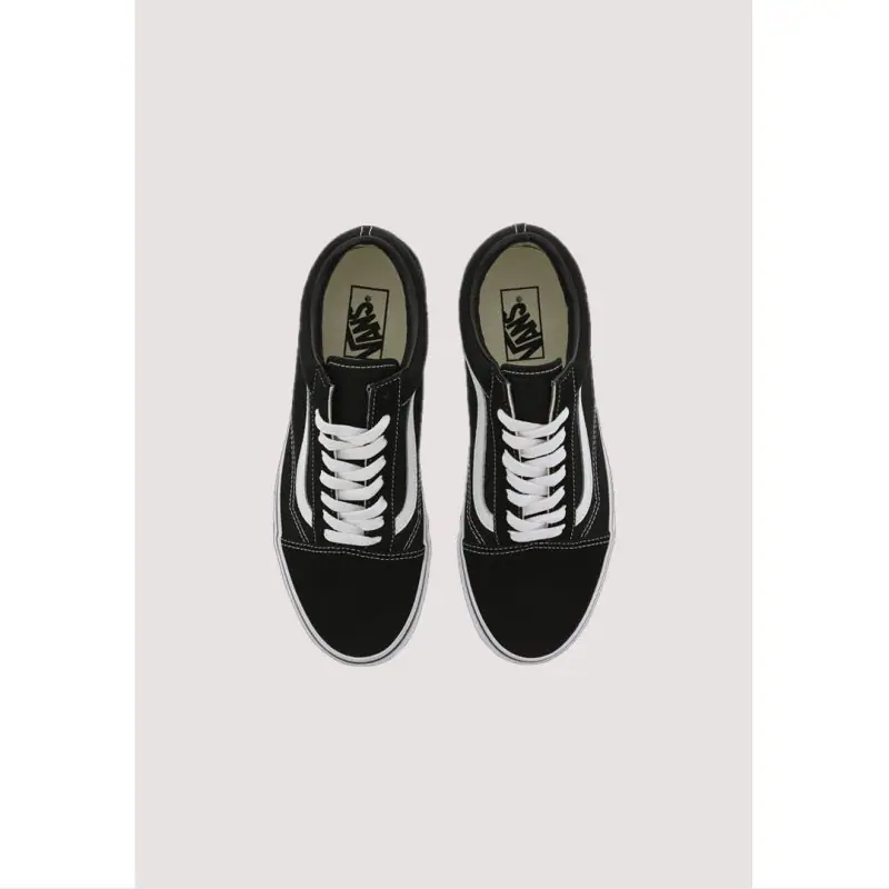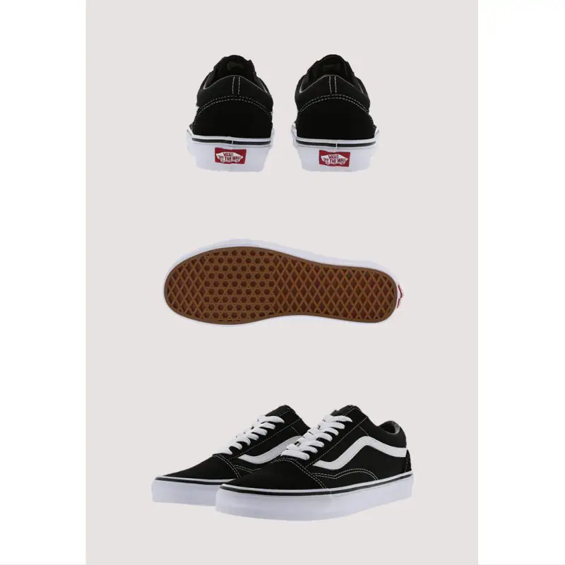 Vans Old Skool Classic Black/White โ Timeless skate-inspired sneakers with durable canvas & suede, iconic side stripe, cushioned insole, and waffle outsole for superior comfort & grip.