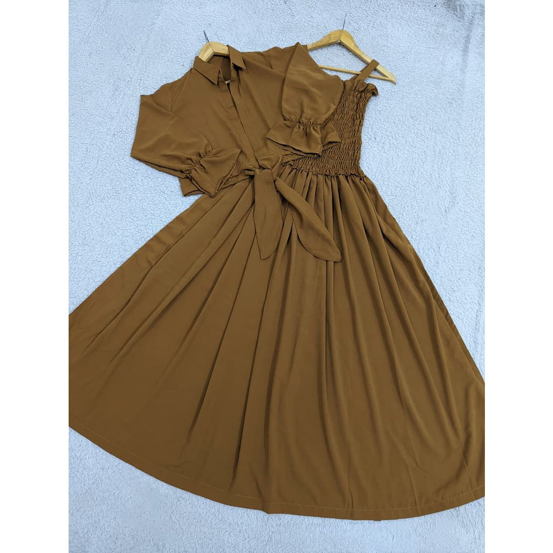 This Capsule Smoking jacket combines timeless elegance with practical design. Tailored from imported georgette, it features a refined smoking silhouette with dual pockets and a maxi length. The premium fabric ensures graceful draping and sophisticated appeal for formal occasions.
